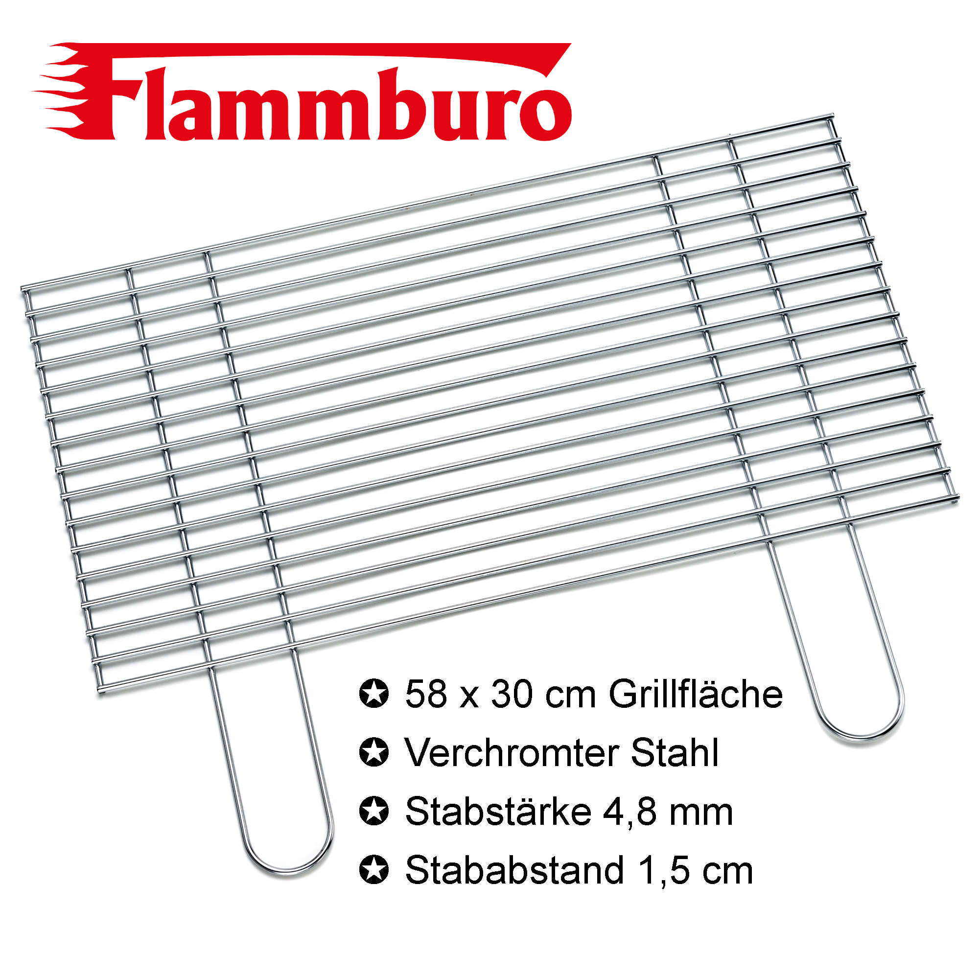 Der Grillrost ist in verschiedenen Größen erhältlich. Es besteht aus verchromtem Stahl und hat eine Stabstärke von 4,8 mm.